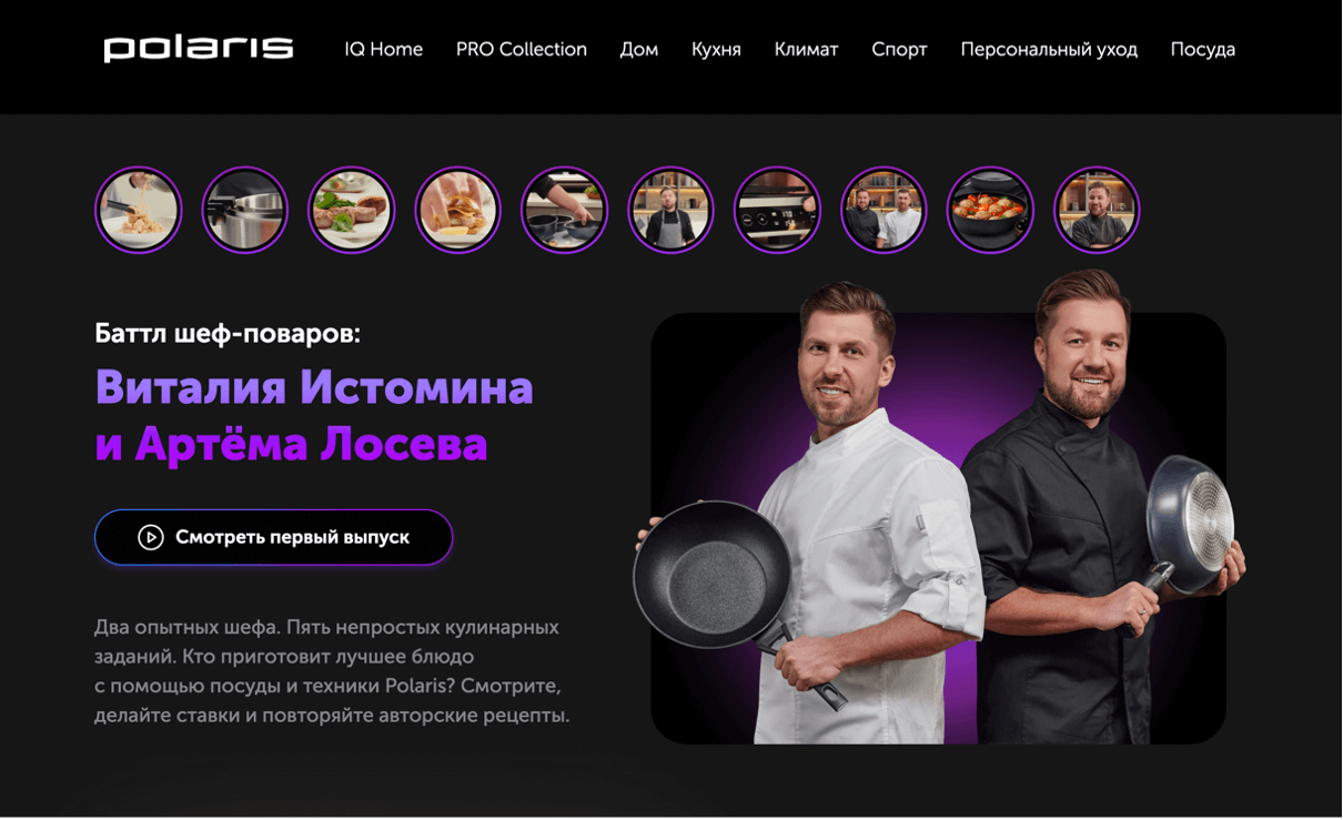 Polaris выпустил коллекцию посуды и техники, с которой требовалось познакомить целевую аудиторию бренда и привлечь новую. Для этого команда решила снять кулинарные видео с поварами с дальнейшим размещением в интернете. Представители