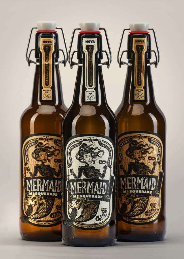 Mermaid masquerade — новогодний подарок дизайн-студии своим клиентам. Крафтовое пиво ограниченной серии с горечью несбыточных фантазий и дурманящим ароматом приключений.