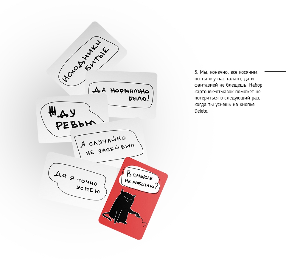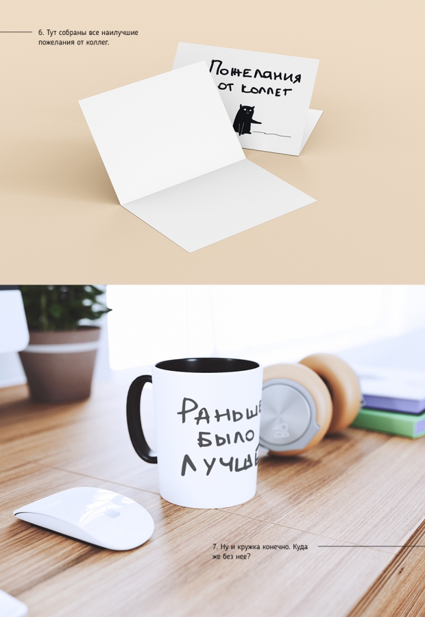 Из подобной любви и заботы о коллегах родился прощальный подарочный набор «Проваливай», символом которого стал один из жителей нашей стены — кот [цензура: плохой кот, потому что ушел].