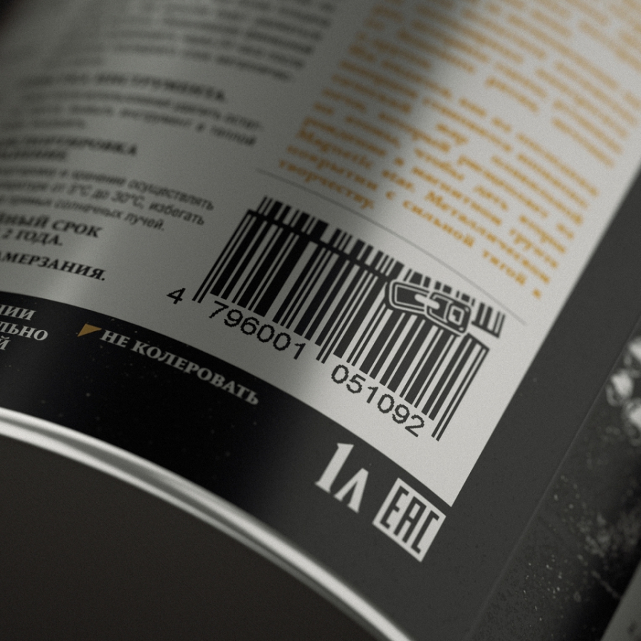 В основе этикетки лежит идея стилизации под обложку альбома музыкальной группы, играющей металл. Визуальная игра, основанная на созвучии продукта с названием музыкального направления.