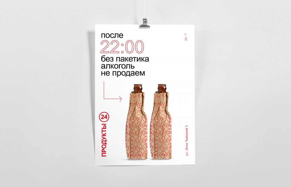 По законам природы и маркетинга каждая сеть магазинов должна иметь все атрибуты бренда: логотип/фирстиль/гайдлайн и далее по списку. У сети «ПРОДУКТЫ 24» нет таких атрибутов. Арт-группа Ашота решила исправить эту несправедливость.