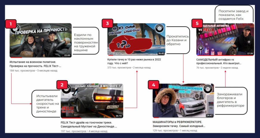 Чтобы регулярно испытывать автомобили и демонстрировать влияние антифриза на двигатель, нужны были ролики по крайней мере на 20−30 минут. Так мы пришли к формату эксклюзивного Youtube-шоу в рамках канала «Машинаторов». Основные ролики о ходе проекта решили поддерживать дополнительными короткими интеграциями-анонсами в выпусках блогеров на другие темы.