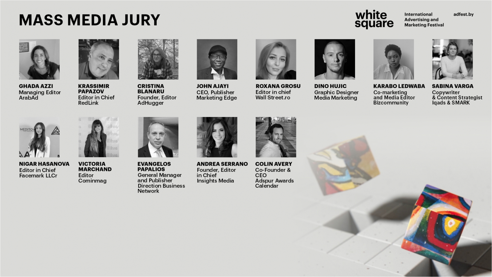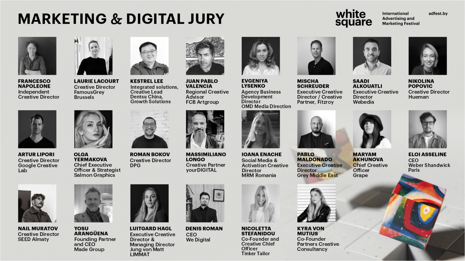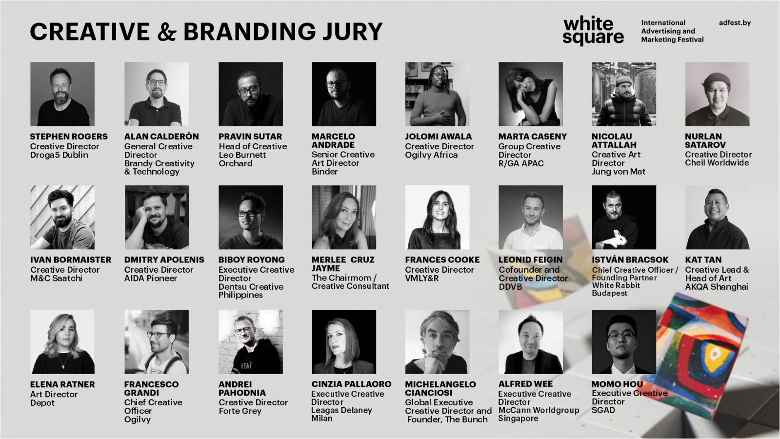 «Высокий уровень судейства, профессиональная компетентность и беспристрастность в оценке работ — одна из сильнейших сторон фестиваля „Белый Квадрат“. В состав жюри вошли эксперты с мировым признанием в индустрии рекламы, многочисленными наградами и опытом судейства престижных фестивалей креативности по всему миру», — рассказал оргкомитет.