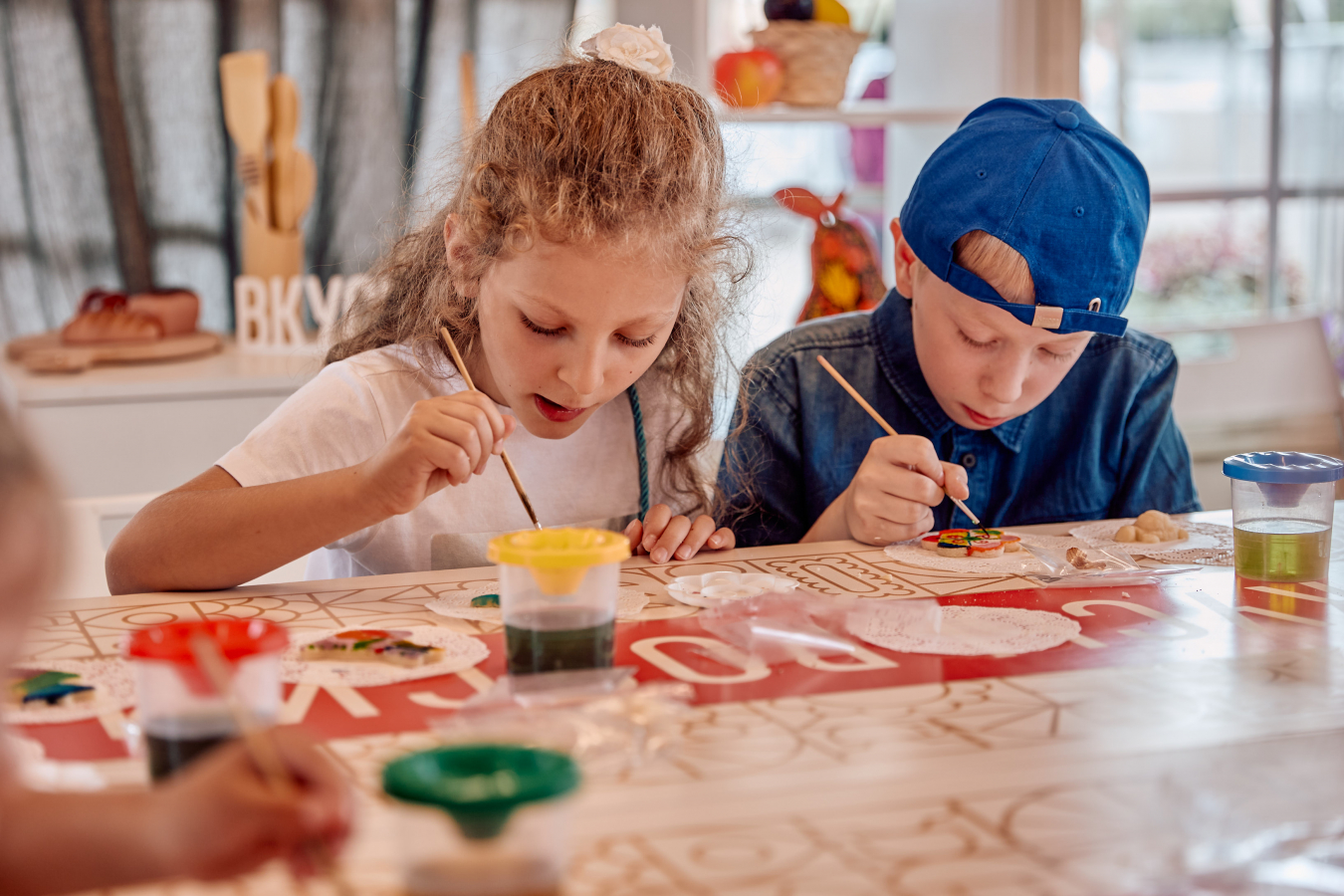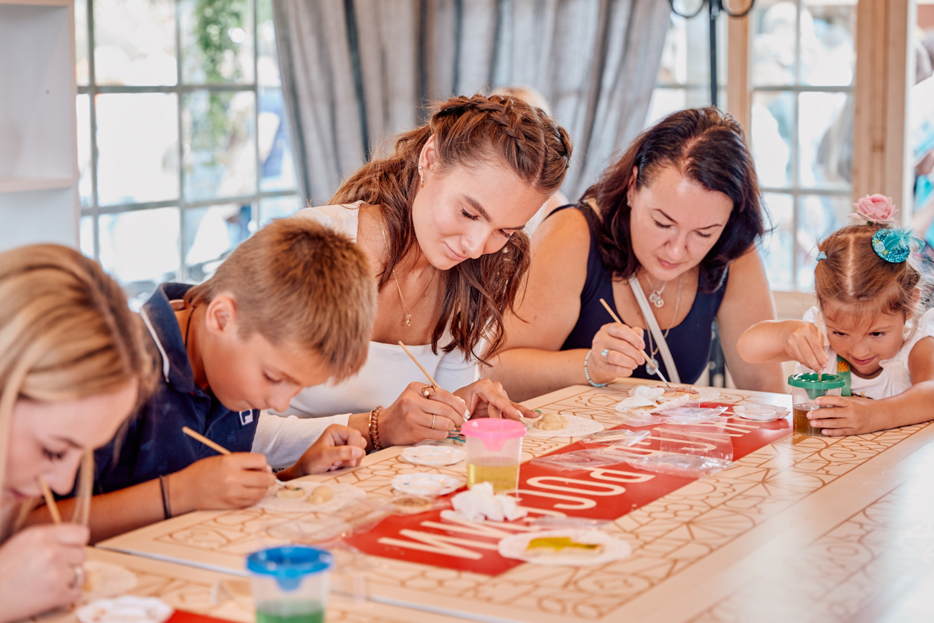 Модерацию творческих мастерских проводят и коммерческие партнёры фестиваля. Здесь для всех желающих, взрослых и детей доступны мастер-классы: приготовление безалкогольных коктейлей на основе региональных брендов, аквагрим, роспись пряников и лепка кубанских овощей из пластилина.
