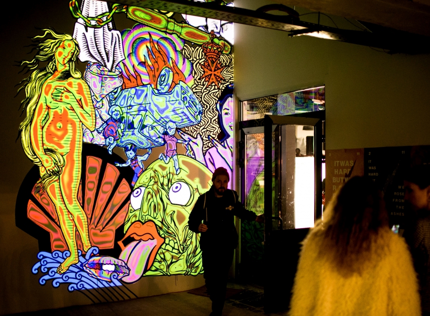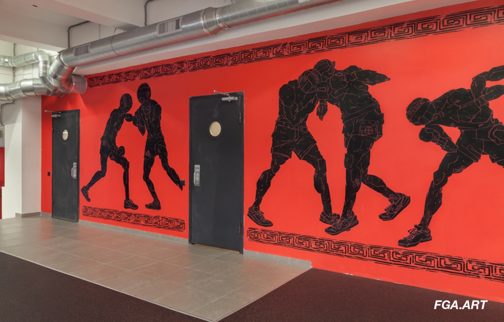Чтобы привнести в изображения бойцов актуальный контекст, стрит-арт художник Вадим Sloof нарисовал их в современной спортивной одежде. Головы боксеров были изображены в виде стилизованных кожаных футбольных мячей. Таким образом, любовь владельцев клуба к футболу и уличной культуре отразилась в гармоничном сочетание красно-черной гаммы, запечатленных эпизодах боксерских спаррингов и футбольном символизме. Данное сочетание придало пространству особую энергию бунта и азарта, отсылающую к уличным дракам.