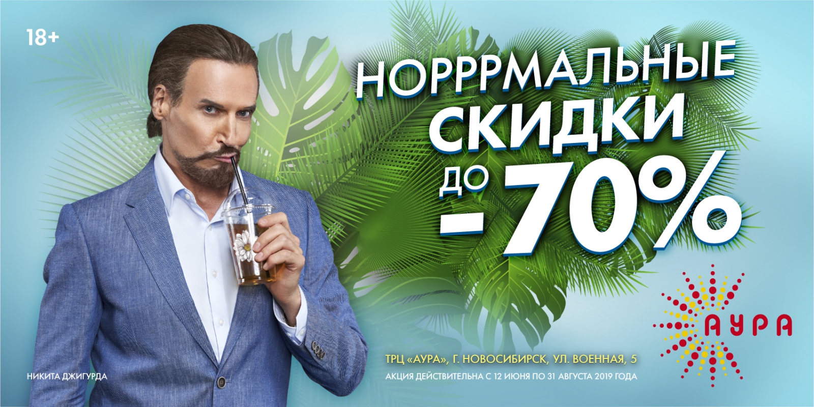 Рекламную кампанию летних скидок поддерживает эпатажный актер, режиссер, бард и поэт Никита Джигурда. В отличие от привычного ему (и нам) образа в новой рекламе он стал нормальным и даже интеллигентным человеком.