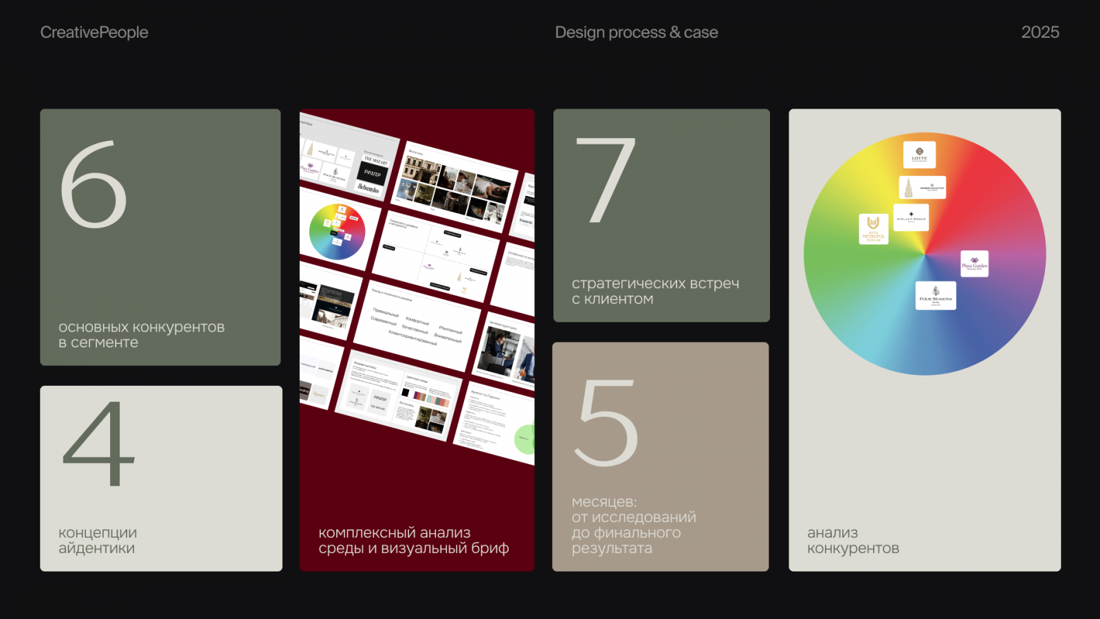 5 месяцев работы ушло на создание визуальной системы, в которой эстетика, элегантность и комфорт объединены в узнаваемом образе.