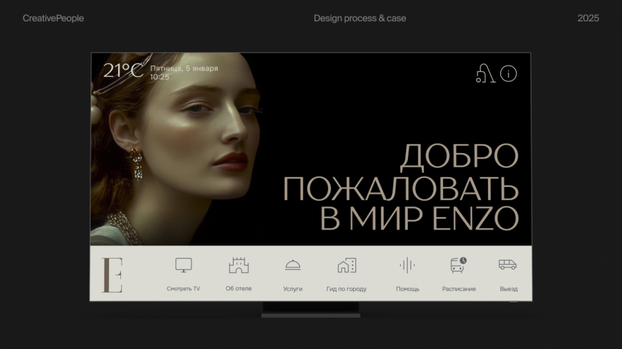 Еще мы разработали welcome-экраны и ТВ-заставки, которые будут встречать гостей на телевизорах в холле и в номерах.