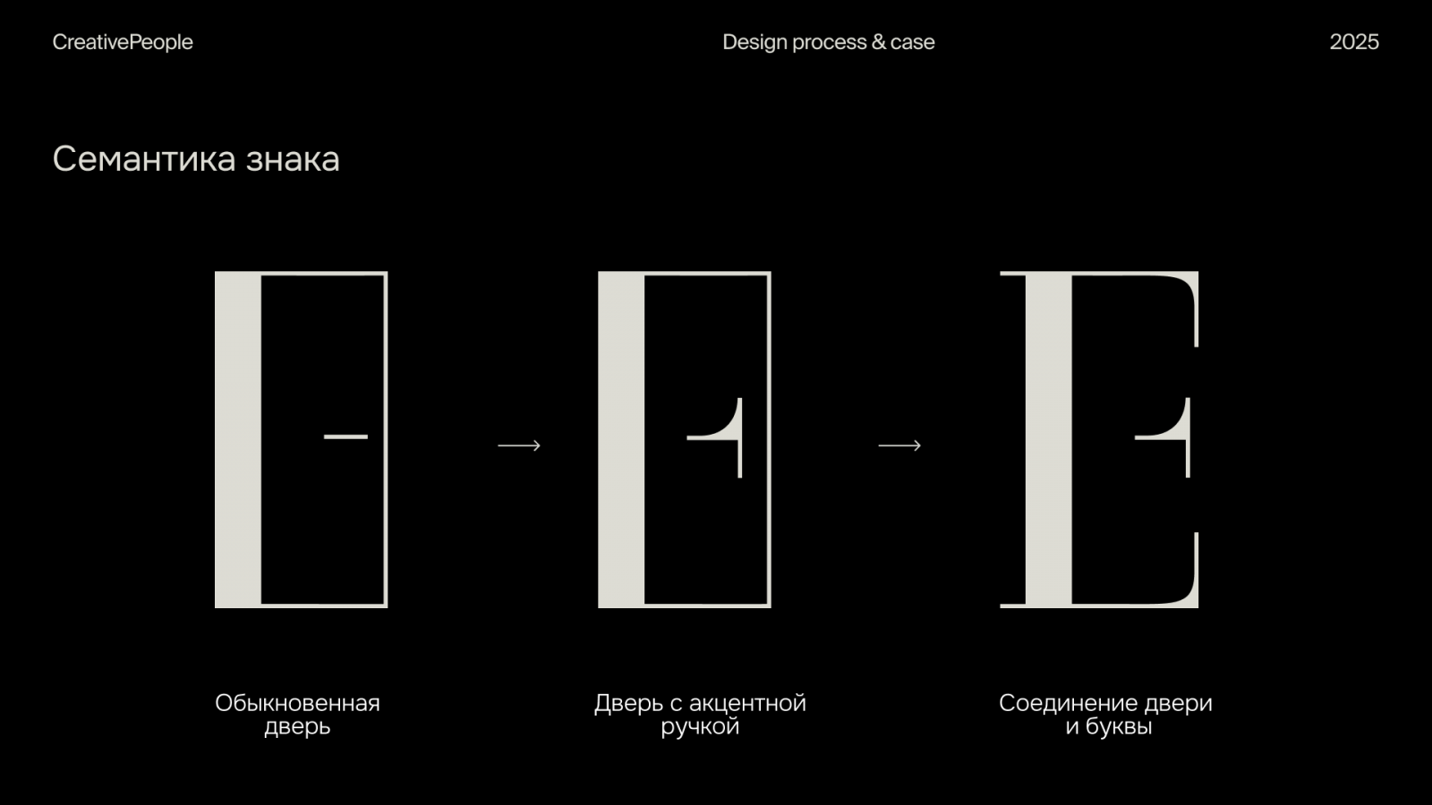 Мы придумали символ-монограмму, в который вшили все четыре буквы названия и образ двери. Знак будто высечен из камня с отсылкой к архитектурной составляющей.