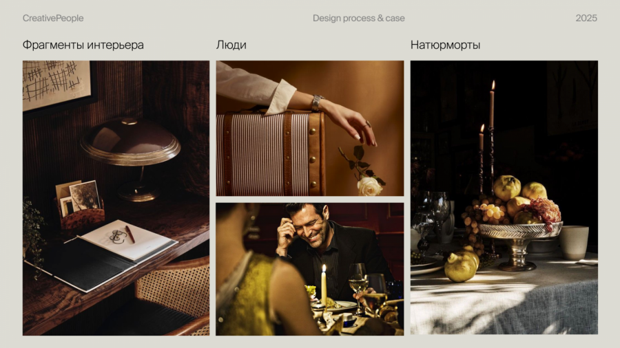 Вдохновением при создании фотостиля стали фламандские натюрморты — нас зацепил их символизм, композиционная строгость и атмосфера искусства. Мы предложили использовать фрагменты интерьера, людей, натюрморты. Они как дорогие картины, которые хочется рассматривать и разгадывать заложенные смыслы.