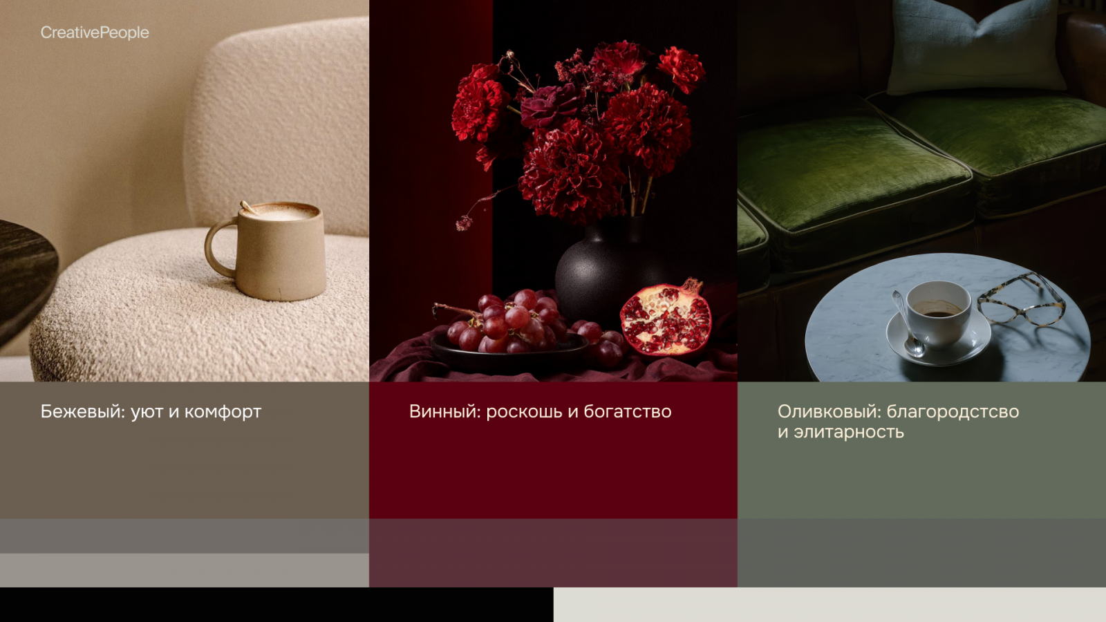 Мы выбрали насыщенные, сложные и глубокие цвета, которые смотрятся как вместе, так и по отдельности: