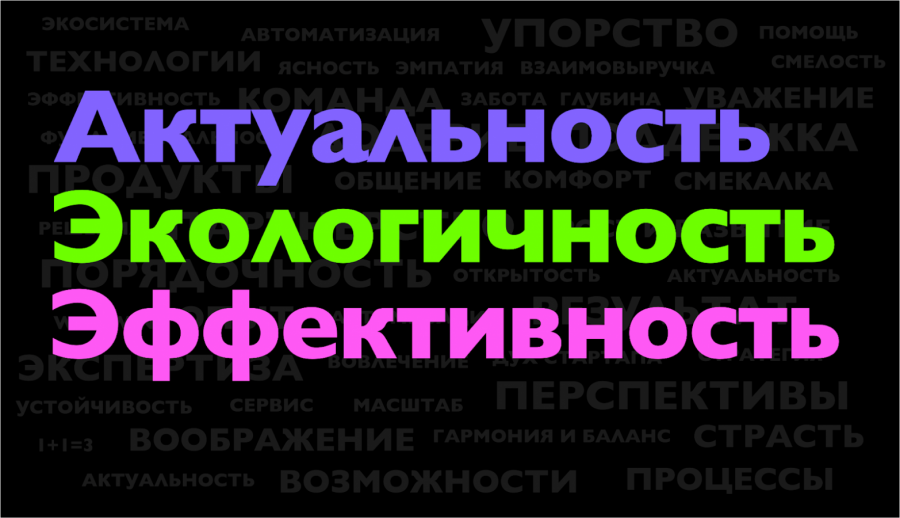 Мы для себя их объединили в три крупных блока: актуальность, экологичность, эффективность.