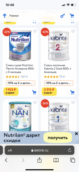 Далее все те, кто перешёл в категорию и на страницу бренда, но покупку не совершил, получили от имени «Детского мира» персональное мотивационное предложение Nutricia.