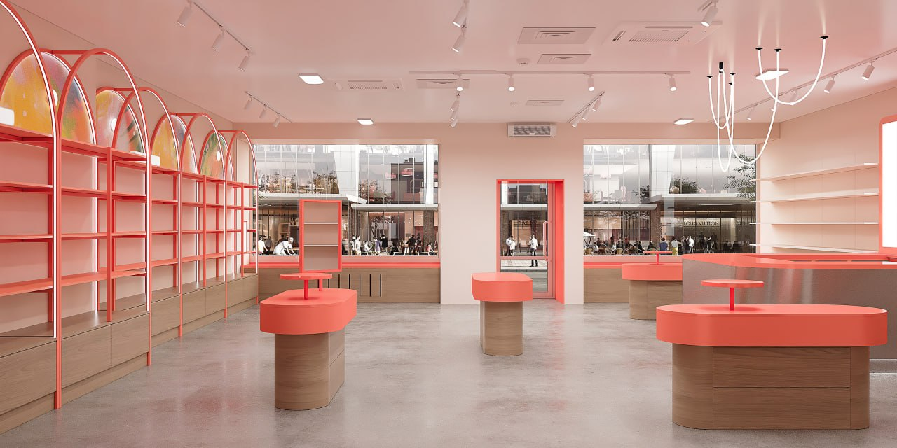 Помимо торговой зоны, в пространстве предусмотрены кофейня и лаундж-зона. Площадка также будет использоваться для проведения мероприятий и взаимодействия с аудиторией.