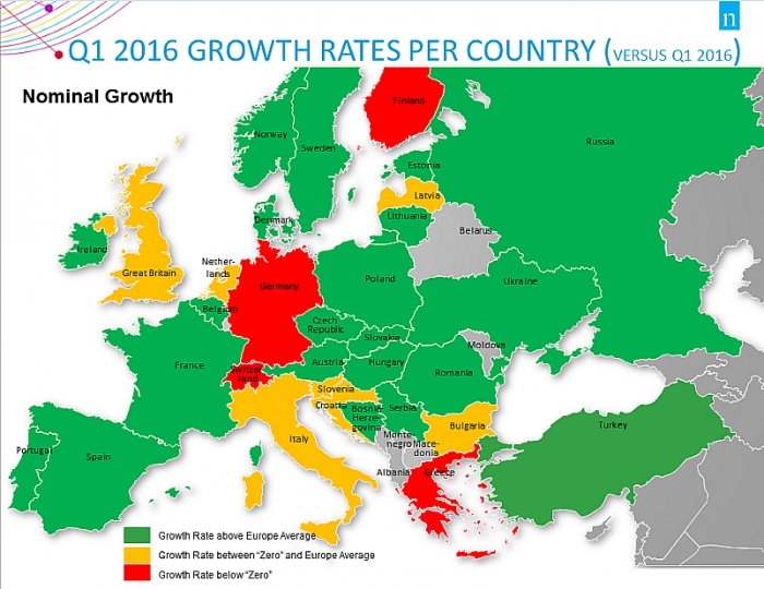 Среди 21 страны-участницы исследования самый высокий рост продаж в денежном выражении наблюдается у Турции, составивший 9,7%, за ней следует Польша (+4,8%) и Венгрия (+4,6%). Наиболее заметное падение продаж в денежном выражении отмечено в Греции (-6,1%) и Финляндии (-2,8%).