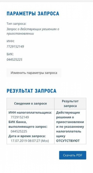 Расчетные счета Университета «Синергия» не заблокированы и не были заблокированы, о чем свидетельствует информация по запросу о действующих решениях о приостановлении из официального источника налоговой службы.