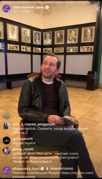 После проведения трансляции гость выкладывал в своем аккаунте еще одну сториз и призывал помочь детям. Также всё время ссылка была доступна в Instagram-профиле фонда, её публиковали или закрепляли в комментариях в самом прямом эфире.