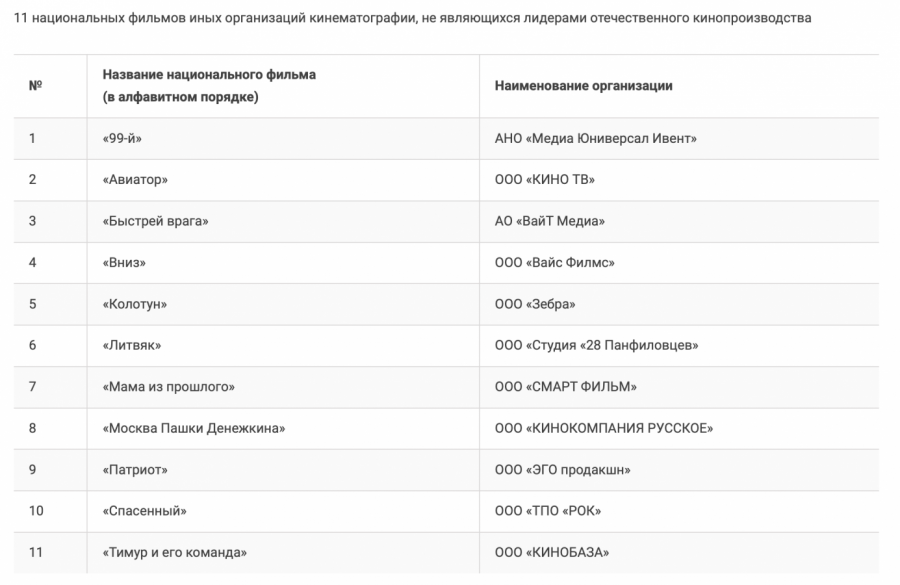 «Фонд кино» выбрал ещё 11 фильмов, которые производят студии, не являющиеся лидерами отечественного кинопроизводства. Для этих проектов также будет выделено финансирование.