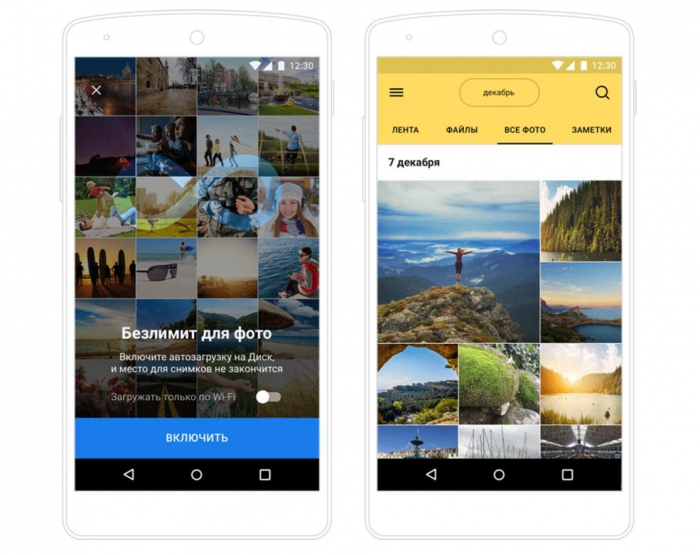 После установки приложения информация с телефона будет автоматически сохраняться в облако. Посмотреть фото и видео можно в разделе «Все фото»: в веб-версии «Диска» или в мобильном приложении. Неограниченный объем хранилища предоставляется бесплатно, однако для экономии трафика пользователь может включить автозагрузку только по Wi-Fi.