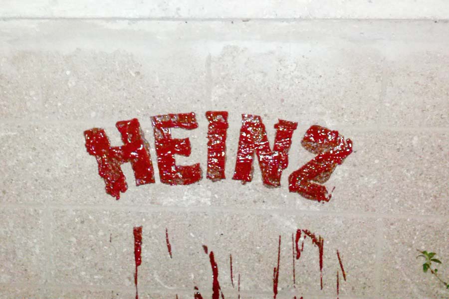 В американском Онтарио фотограф Дорота Панковская запустила проект из серии уличного искусства под названием «Pro Bono Promo». Его реализация заключается в разработке логотипов известных брендов содержимым продуктов.Так логотип Heinz создан при помощи кетчупа на асфальте, а бренд Cheez Whiz выложен на стене сырными ломтиками.