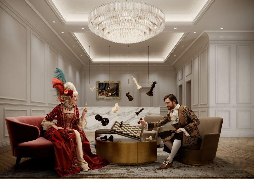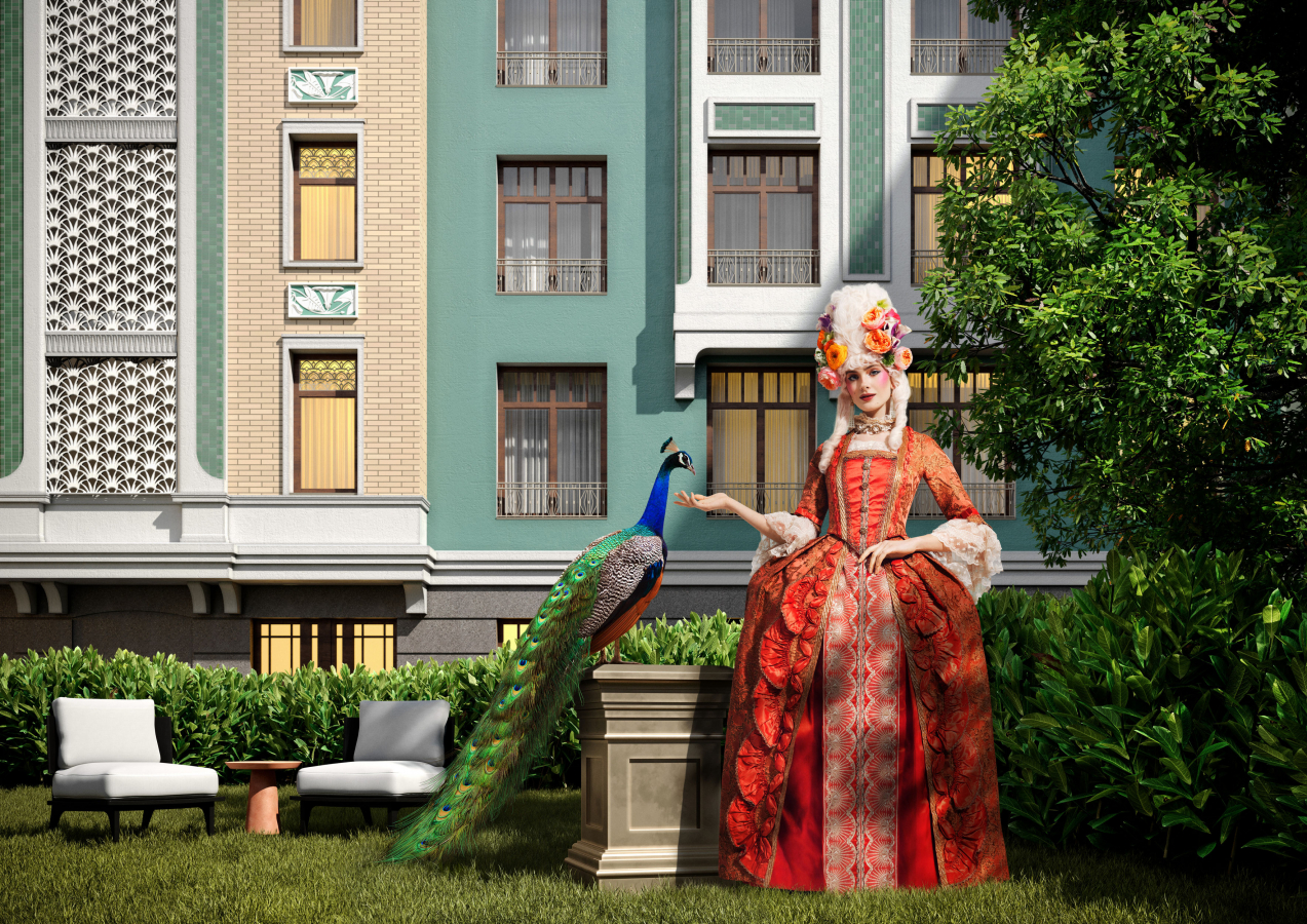 Рекламировать арбатские резиденции «Театральный дом» было решено в стилях барокко и рококо. Для этой задачи был приглашен известный стилист, бывший креативный директор журнала GQ, стилист журналов Harper’s Bazaar, L’Officiel Екатерина Мельникова. Екатерина неоднократно участвовала в проектах всемирно известных художников — арт-группы АЕS+F.
