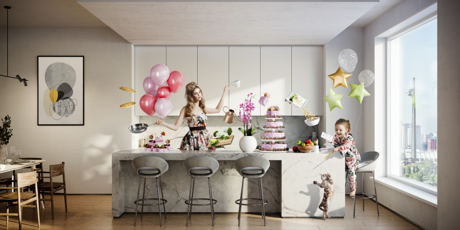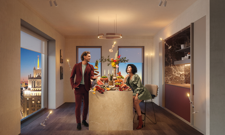 В целом хотелось показать высокую эстетику каждой из картинок, создать атмосферу сюрреализма и рассказать, что для владельцев квартир компании «Галс-Девелопмент» нет ничего невозможного.