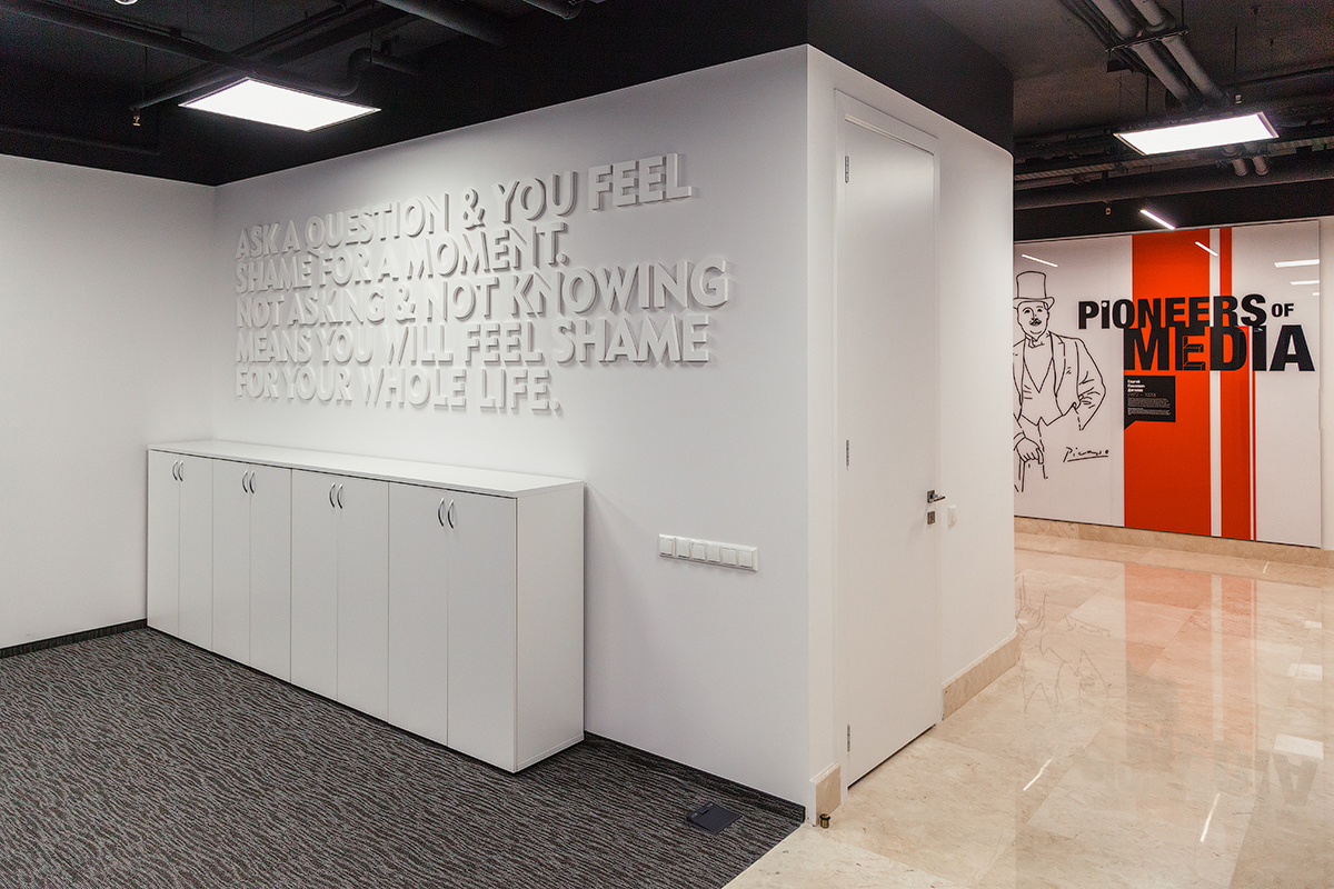 Все переговорные названы именами людей, которые как-то повлияли на становление медиа. Есть даже переговорка «Кирилл и Мефодий».