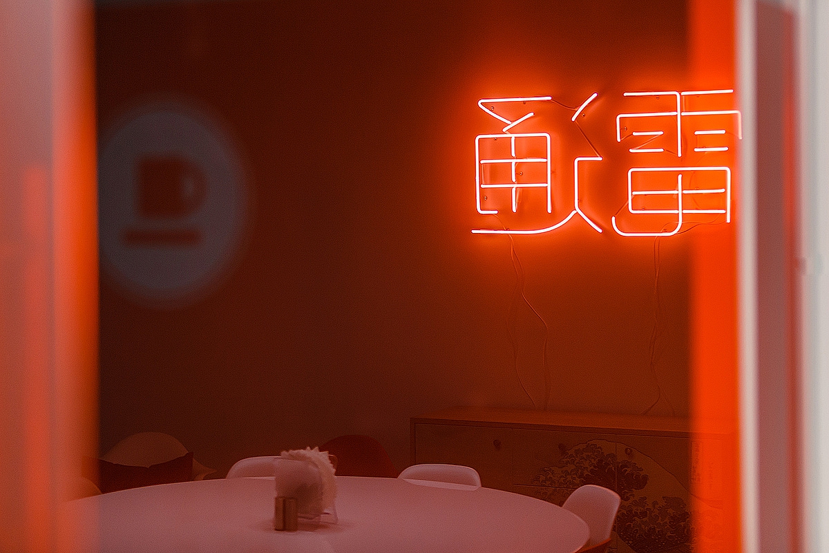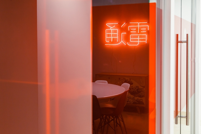 В офисе много логотипов и много японского. Вот логотип на английском.