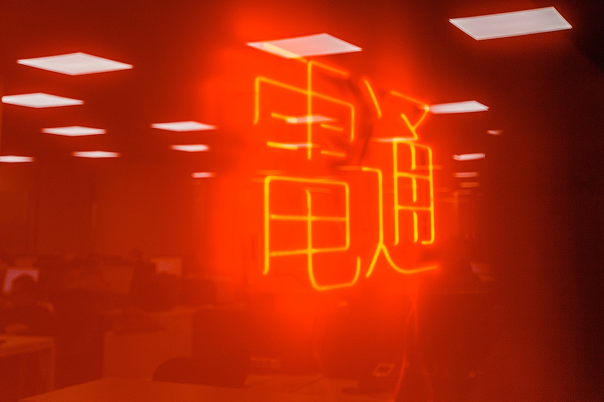 Логотип состоит из двух иероглифов, которые дословно означают «электричество» и «коммуникация».