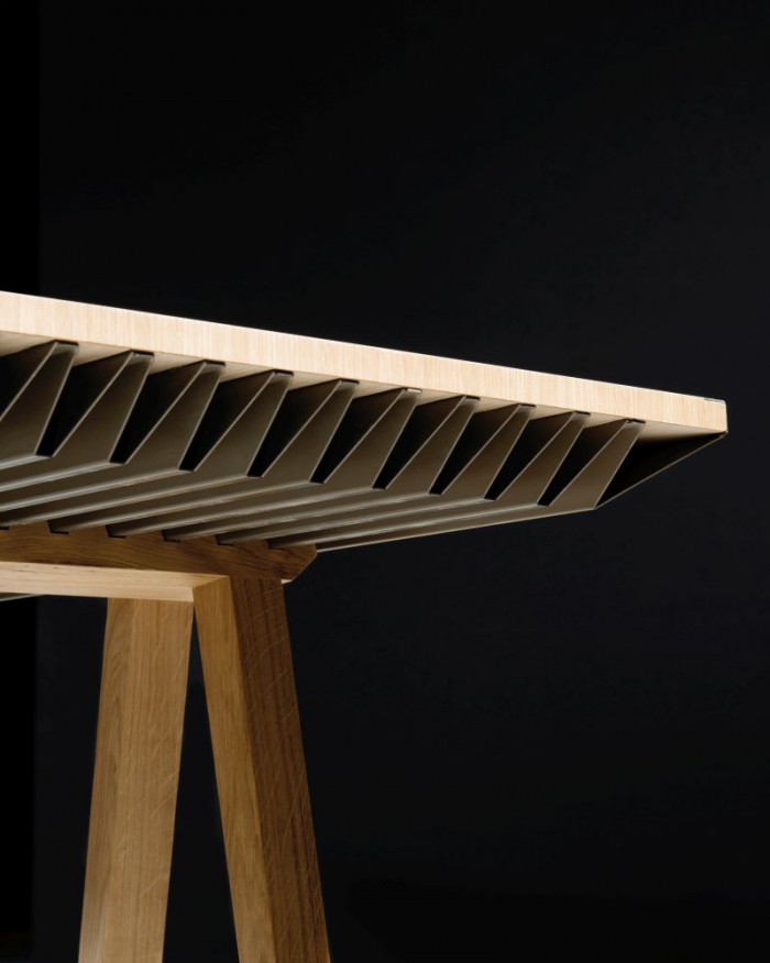 Стол под названием ZEF Climatic Table выполнен из цельного массива дуба, на нижней части столешницы расположена алюминиевая пластина, в середине проложены материалы, способные выделять или поглощать тепло. Благодаря такой необычной системе ZEF Climatic Table может поддерживать в помещении температуру около 22 градусов Цельсия.