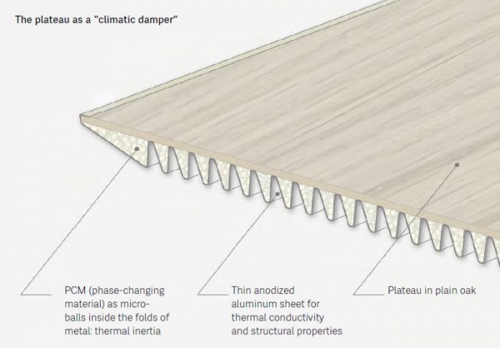 Если же температура воздуха поднимается, материалы в столе начинают поглощать лишнее тепло, которое после выделяется обратно. По подсчетам создателей проекта, ZEF Climatic Table способен снизить расходы на охлаждение помещения на 30%, а расходы на обогрев — на 60%.