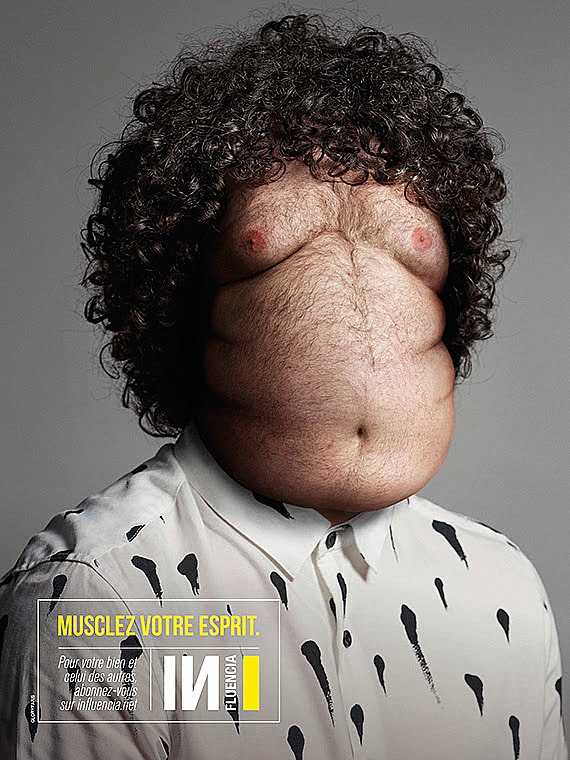 Французский портал о культуре, искусстве и дизайне Influencia позиционирует себя как серьезный источник информации, полезный для «интеллектуального здоровья». Идеология издания строится вокруг ключевой идеи - переизбыток ненужных новостей наносит значительный вред умственным способностям, а от вредных статей ум толстеет. Поэтому неважно, сколько времени вы тратите в тренажерном зале - в современном мире можно потолстеть еще и в интеллектуальном плане, т.к. СМИ превращаются в настоящий фаст-фуд для мозга.