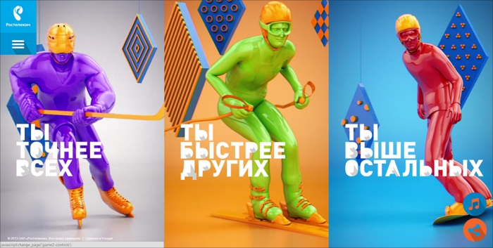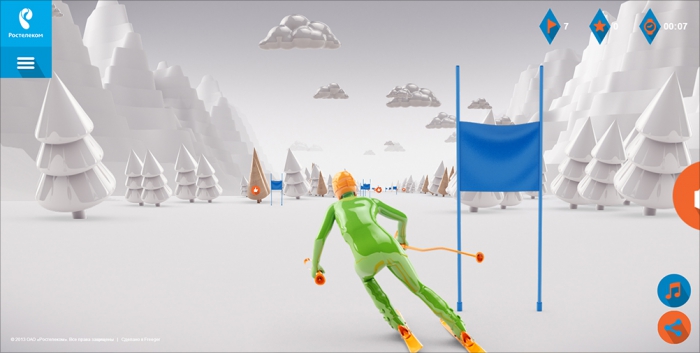 В основе проекта лежит игра - виртуальная Олимпиада. Пользователь может выбрать один из трех видов спорта и попробовать набрать максимальное количество очков. Самые удачливые игроки попадают в рейтинг, а первые 3-е сильнейших получили приглашение от Ростелеком посетить настоящую Олимпиаду в Сочи в феврале. Игра не требует установки и доступна не только на компьютере, но и на смартфонах и планшетах – кроссплатформенный сайт, универсально подстраивается под любые устройства и разрешения экрана. Кроме того, реализована новая прогрессивная технология управления играми – использование мобильного телефона в качестве джойстика для своего компьютера.