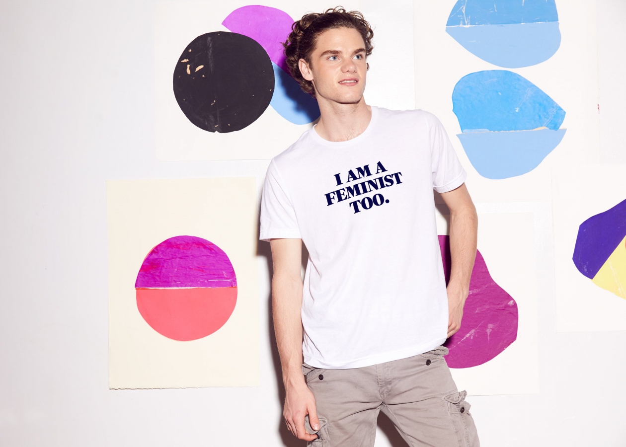 Белая мужская футболка и розовая футболка для мальчиков с надписью I am a feminist too («Я тоже феминист») появились в коллекции магазина не так давно, но уже собрали более 17 тысяч лайков на официальной странице бренда в Instagram.