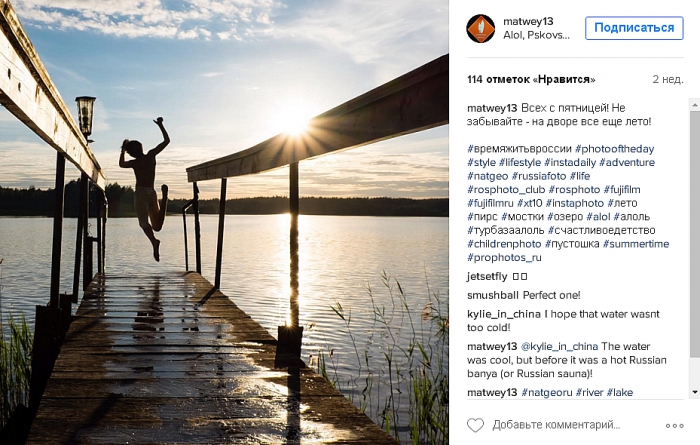 Два месяца назад застройщик запустил конкурс #ВРЕМЯЖИТЬВРОССИИ, который продолжается и сейчас. Чтобы принять в нем участие, нужно сделать фотографию или снять небольшое видео, которые соответствуют представлениям о том, почему сейчас время жить в России, опубликовать работы на своей странице в соцсетях (Instagram, Facebook, Twitter или Вконтакте), поставить хештег #ВРЕМЯЖИТЬВРОССИИ и попросить друзей проголосовать.