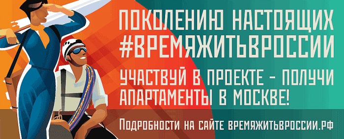 Рекламная кампания #ВРЕМЯЖИТЬВРОССИИ несет четкое социальное послание молодому поколению, которое застройщик призывает оставаться на Родине и помогать ее развитию.