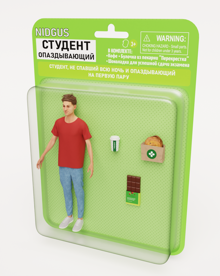 Как и во всех других сериях виртуальных игрушек, я отталкивался в первую очередь, очевидно, от места, в котором практически каждый из нас бывал — магазин у дома. Даже в таком бытовом месте можно выделить ярких и знакомых персонажей из своего собственного опыта. Конечно же, некоторые из них уже стали частью массовой культуры, как например, Галя, которая отменяет своей карточкой ошибки в кассе. Я просто перенес этот мем в плоскость игрушек.