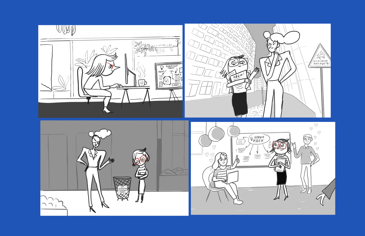 Формат аудиоисторий — хороший инструмент, который можно использовать для будущего онбординга сотрудников. Можно читать лонгриды про каждую ценность, а можно вынести их главный смысл, прослушав ироничные басни, ведь знакомые всем с детства строки не могут оставить равнодушными: «Послал Ирине как-то босс проект мудрёный…», «По оупенспейсу модному сотрудника водили и медленно, но чётко в курс дел его вводили», «Однажды Лебедь, Рак и Щуков продукт мобильный разрабатывать взялись…», «Красотуня Маргарита целый месяц проленилась то созвон, то кофебрейки, то мечтала, то влюбилась…»