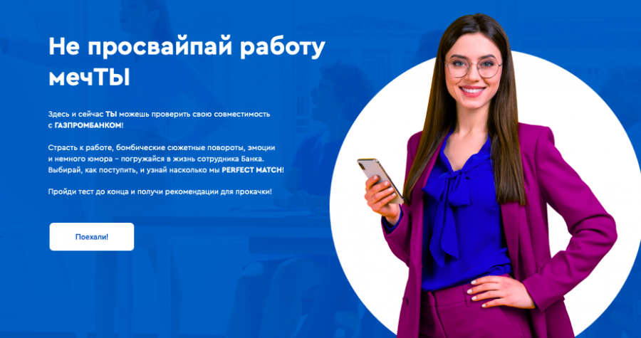 Другой активацией стал интерактивный тест Perfect Match — возможность проверить свою совместимость с «Газпромбанком».