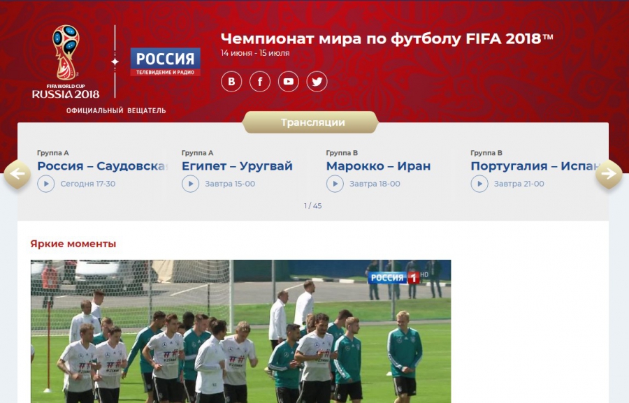 Онлайн-трансляции ЧМ-2018 на сайтах вещателей
