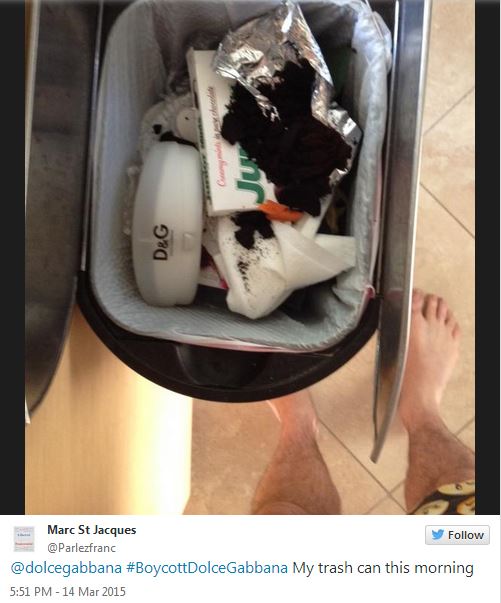 Против Дольче и Габбана выступили многие представители шоу-бизнеса, в том числе Рики Мартин и Кортни Лав, теннисистка Мартина Навратилова, актер Райан Мёрфи. В соцсетях появились фотографии с выброшенными вещами Dolce&Gabbana.