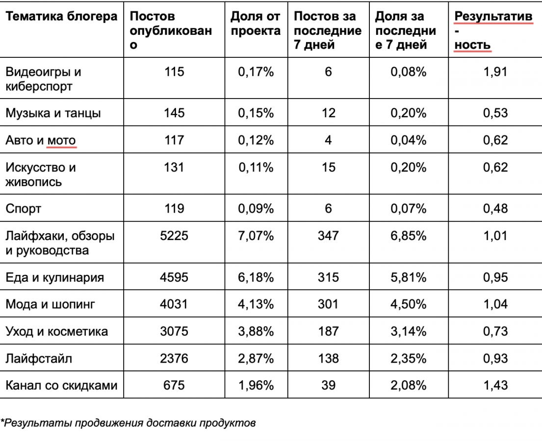 На старте рекламной кампании сложно угадать, что «выстрелит» лучше, поэтому для каждого продукта стоит пробовать разные маркетинговые схемы и каналы привлечения трафика. Например, через блогеров лучше всего продвигать игры и FMCG-бренды, которые могут быть интересны разной целевой аудитории.