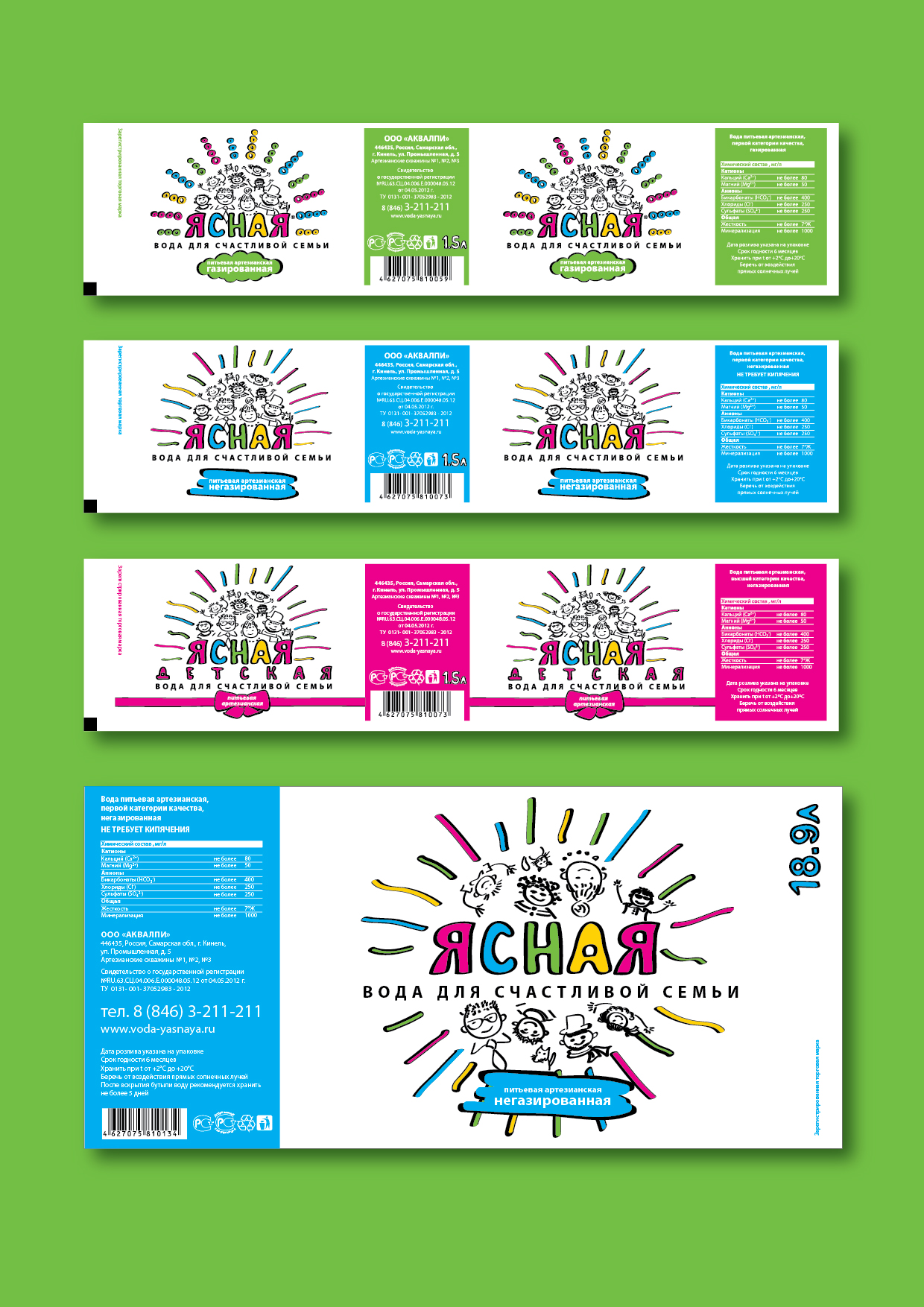 В основу логотипа марки легли три ярких и понятных образа: летнее солнце, радуга после дождя и семья, нарисованная рукой ребенка. Искренность и чистота детского рисунка, чистейшая артезианская вода и капелька доброты – все это вода «Ясная», которая предназначена не только для детей. Она еще и для взрослых, в душе которых живет маленький хулиган, говорят в агентстве.
