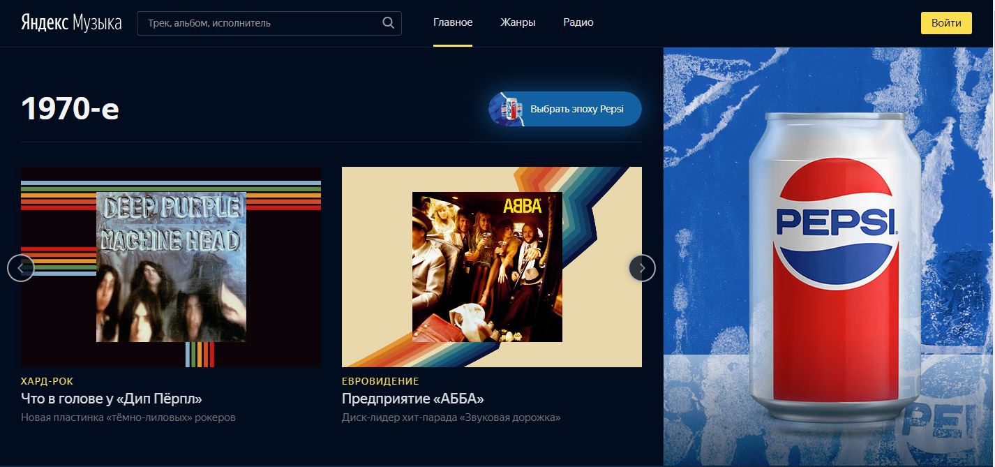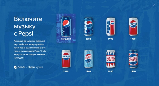 Кампания была продолжена интерактивным проектом Pepsi с медиасервисами компании «Яндекс». В частности, было создано эксклюзивное оформление главной страницы сервиса «Яндекс.Музыка» с использованием ярчайших моментов разных эпох.