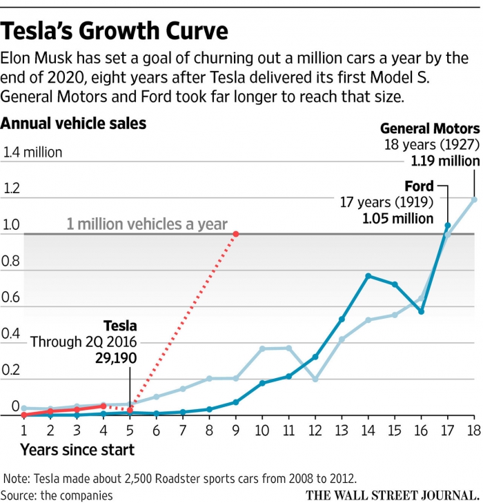 В своих последних интервью Маск без устали заявляет о том, что созданная им компания будет ежегодно производить по 1 млн электрокаров к 2020 году, однако аналитики считают, что подобные прогнозы не имеют никакого отношения к реальности. Дело в том, что с момента своего основания в 2008 году американская компания поставила на рынок всего 140 тысяч электромобилей.