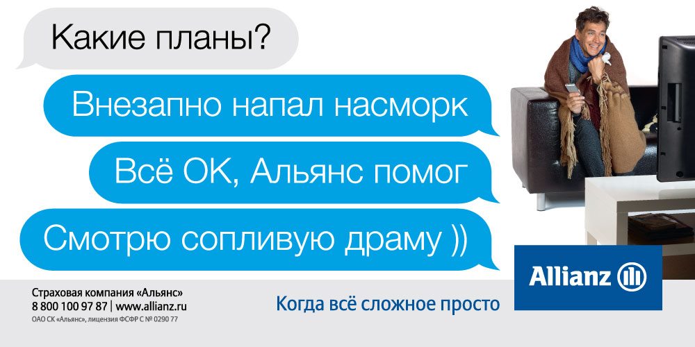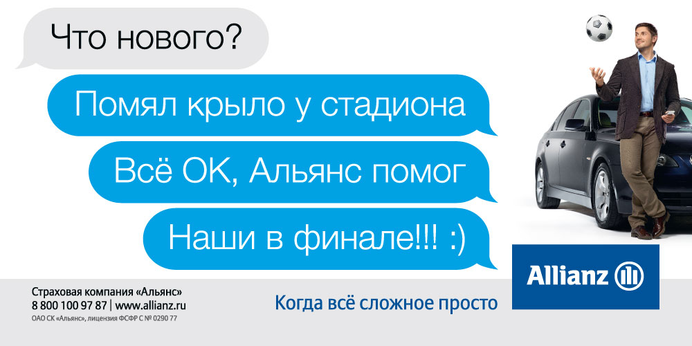 Таким образом, креаторы хотят донести до потребителя мысль о том, что страховой случай может произойти с каждым, а компания Allianz поддержит в трудный момент.