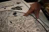 С оригиналами карт, кстати говоря, много всего любопытного. Для резки на плоттере сложность в том была, что все, что белое на черном — это белые объекты. Вся карта состоит из белых объектов, лежащих на черных сверху или перекрывающих черные сверху. Как в торте: слой теста, слой начинки. Я их выделил в отдельный слой, и потом эти белые объекты пробил сквозь все черные. Осталась одна краска — черная.