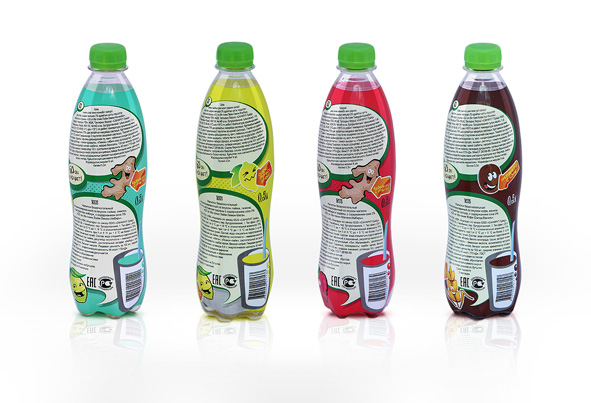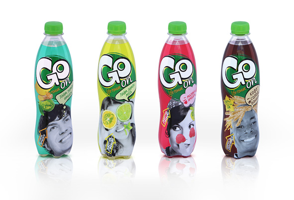 Для оформления упаковки креаторы выбрали сложные сочетания цветов и стилей: разноцветные пластиковые бутылки с напитками украшены черно-белыми фотографиями улыбающихся мужчин и женщин. Дизайнеры считают, что именно это сочетание передает потребителю светлые и позитивные эмоции.