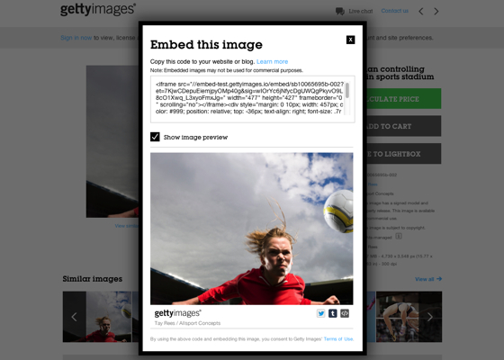 Он пояснил, что скачивать бесплатно сами изображения из фотобанка нельзя, однако появилась возможность свободно использовать embed-код фото, для его размещения на сайтах и в соцсетях. Крейг Петерс особо подчеркнул, что использовать фотографии из базы Getty Images можно исключительно в некоммерческих целях.