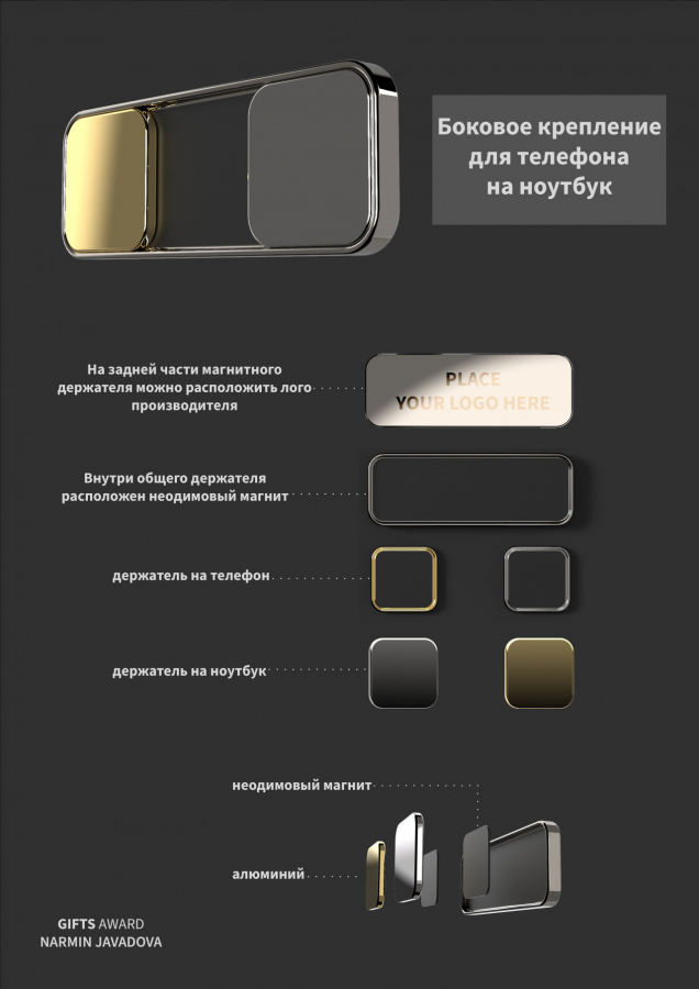 Первое место досталось Нармин Джавадовой и ее работе «Магнитный держатель». Это приспособление для телефона, которое крепится на заднюю часть ноутбука.